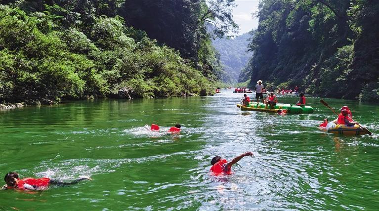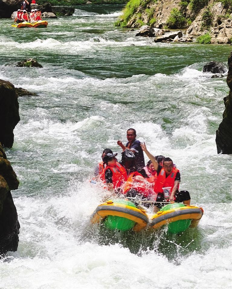 猛洞河漂流位于永顺县,距离芙蓉镇景区约20公里、车程30分钟。猛洞河漂流全程约17公里,落差200米,漂流时长约3小时。沿河两岸绿树葱茏、悬崖耸峙,飞瀑流泉,水质清澈,抬头可见山景,低头可赏水色。漂流中,激流险滩可以感受探险的刺激,水流平缓时可以感受“水枪大战”的乐趣。