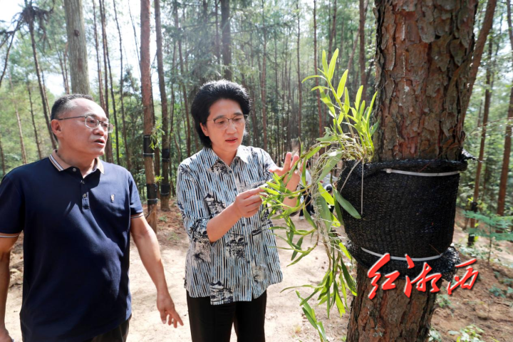陈华到龙山县石羔街道兴堡中药材基地调研林下中药材种植及生产情况。周兴云 摄