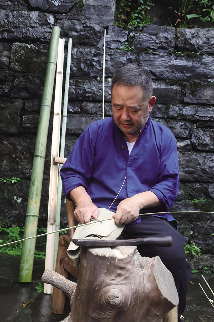 聂大勇在处理竹材。 (图片由凤凰县委宣传部提供)