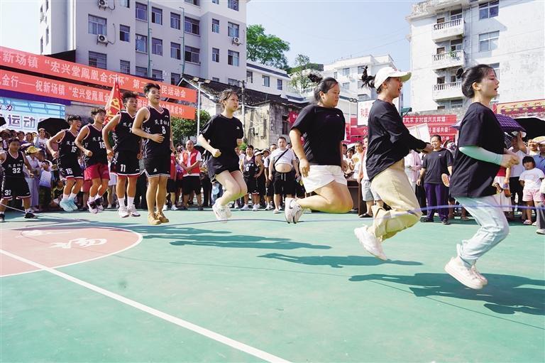 “传球!好球!耶——”一记精准的三分球应声入网,震耳欲聋的欢呼声瞬间引爆了篮球场。8月8日,凤凰县新场镇第二届村民运动会篮球决赛激战正酣,为期5天的乡村体育嘉年华迎来最高潮。