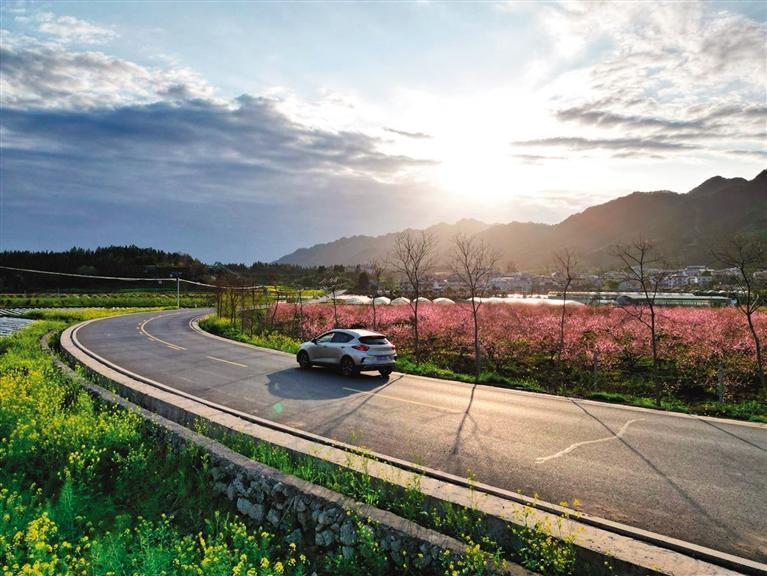 驾车行驶在吉首市县道077洽比河旅游公路上,公路如灵动的丝带,缠绕于翠绿的山间,与洽比河的潺潺流水相依相伴,一路串联起中黄、岩科、洽比等9个少数民族特色村寨。青山环抱中,古朴的苗寨错落有致,共同勾勒出一幅绝美的山水田园图,让每一位路过的游客都沉醉于人与自然和谐共生的诗意美景之中。县道077洽比河旅游公路也因此获评“湖南省最具人气路”,成为“路随景生、景由路活” 的生态样本。