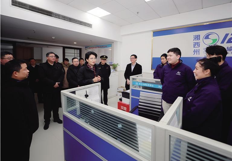 湘西州委副书记、州长陈华在州交通运输局12328电话服务中心与工作人员交流。