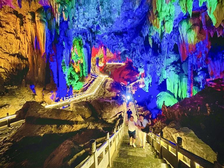 奇梁洞内因喀斯特地貌形成的石笋、石柱、石幔、石帘与地下暗河一起构成了奇绝瑰丽的“龙宫”。 团结报全媒体记者 黄新媛 摄