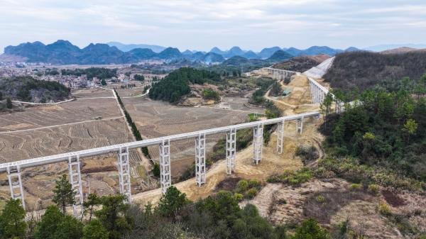 1月14日,新田县三井镇长冲村,建设中的毛俊水库新田灌区长冲渡槽。刘贵雄 摄(湖南图片库)