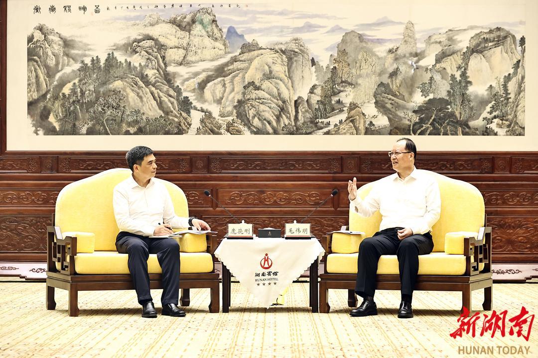 毛伟明对国家电网公司长期以来对湖南的关心支持表示感谢,并重点介绍我省能源基础设施建设情况。他说,当前,湖南正全面落实习近平总书记“四个革命、一个合作”能源安全新战略,着力解决能源“够不够”“优不优”“绿不绿”三个核心问题,能源供需基本平衡、低碳转型成效明显、改革创新深入推进。目前,全省电力稳定供应能力达5076万千瓦、成功应对今夏历史最高负荷4664万千瓦的考验;“十四五”期间全省单位GDP能耗累计下降14.9%,高于全国平均水平4.1个百分点;建成电网防灾减灾等4个全国重点实验室,特高压输变电装备集群入选国家级产业集群。希望国家电网公司继续发挥资金、人才、技术等优势,进一步加大在湘投资力度,在迎峰度夏电力保供、新型能源体系建设等方面加强合作,支持疆电入湘、湘粤、湘黔背靠背联网等重大工程建设,助力湖南不断提高电力供应保障能力和电力基础设施互联互通水平,打造区域电力交换枢纽。湖南将持续打造一流营商环境,为国家电网公司在湘发展提供更优服务、创造更好条件。