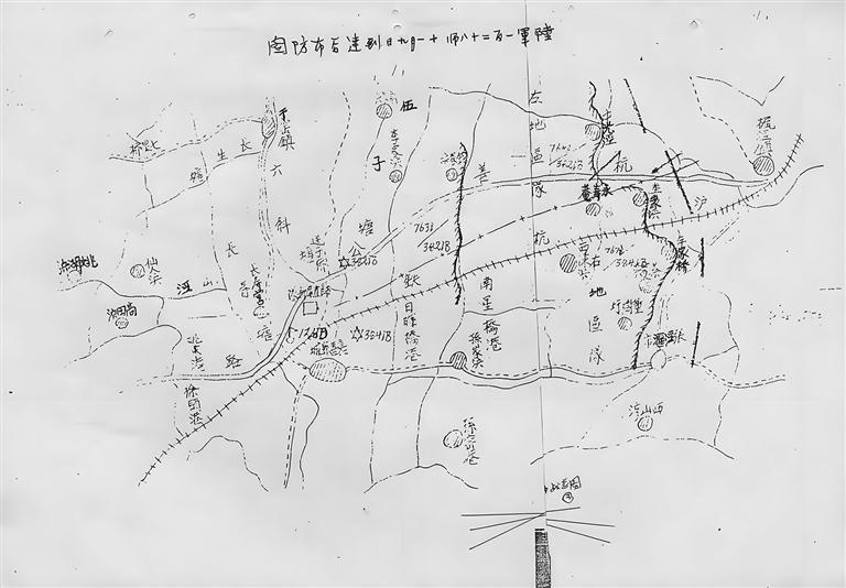 陆军第一百二十八师十一月九日到达后布防图。(原件存于中国第二历史档案馆)