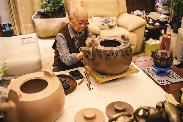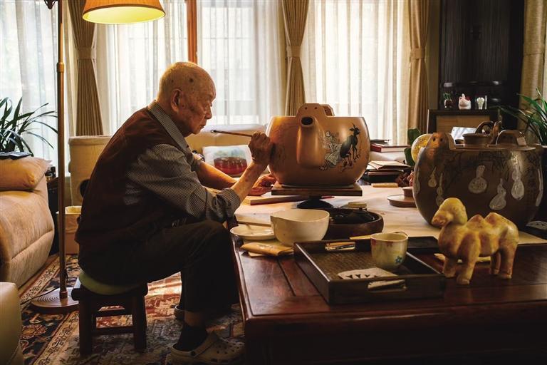 黄永玉先生做过许多不同门类的创作,但是画宜兴紫砂壶的情结,一直不曾放弃。2016年4月18日起,他专门到宜兴,画壶32天。