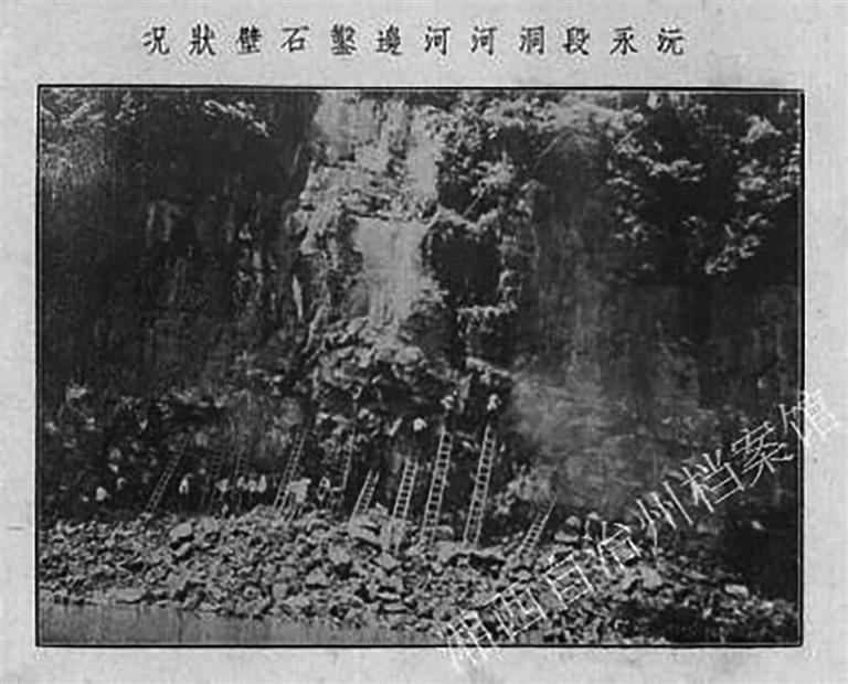 湘川公路始建于1936年3月,1937年3月建成通车。该公路由“两弹一星”功勋周光召之父周凤九设计。其中矮寨公路段由湘西公路副总工程师彭静白设计。公路起于沅陵县三角坪,经泸溪、所里(今吉首)、永绥(今花垣)至川边茶峒,全长187.66公里。为打通湘川线,湘西举全域之力抢修6公里矮寨天险,每公里因工难死去民工40多人。 (文图由湘西州档案馆提供)