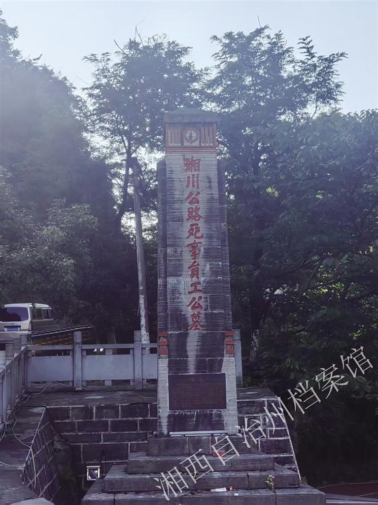 1937年3月,湘川公路施工历时8个月全线通车。为纪念死难员工,修建“湘川公路死事员工纪念碑”于矮寨坡路侧。(原件藏于湘西州档案馆)