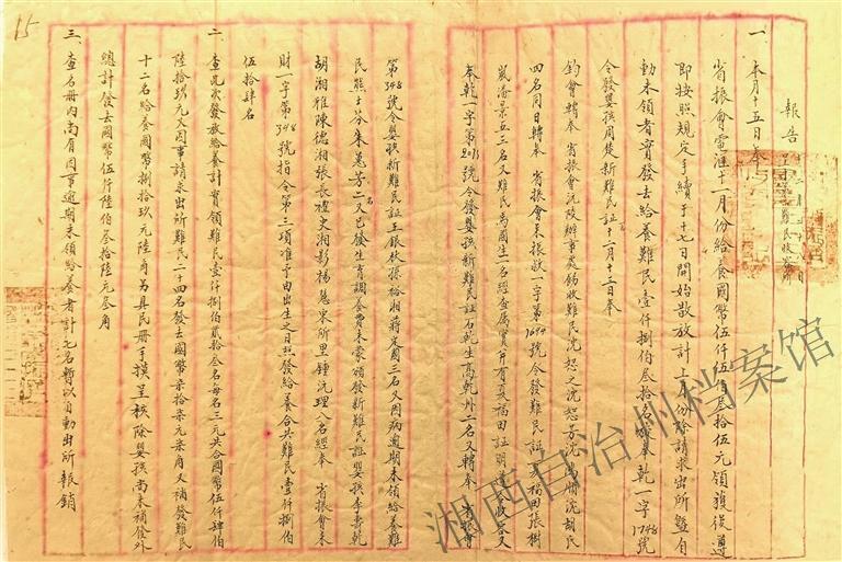 给乾城县1854名难民发放国币5636.3元的报告。(原件藏于吉首市档案馆,湘西州档案馆存有数字化副本)