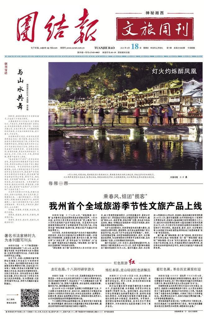 创刊之初,我们便旗帜鲜明地投身于这场征程。2021年4月18日第1期头版报道《我州首个全域旅游季节性文旅产品上线》,“神秘湘西·走个春”破土而出,此后“爽一夏”“赶金秋”“过大年”四季产品体系渐次铺开,成为“神秘湘西”品牌最富活力的脉搏,标志着湘西文旅从零散景点营销向全域全季系统策划的历史性转变。