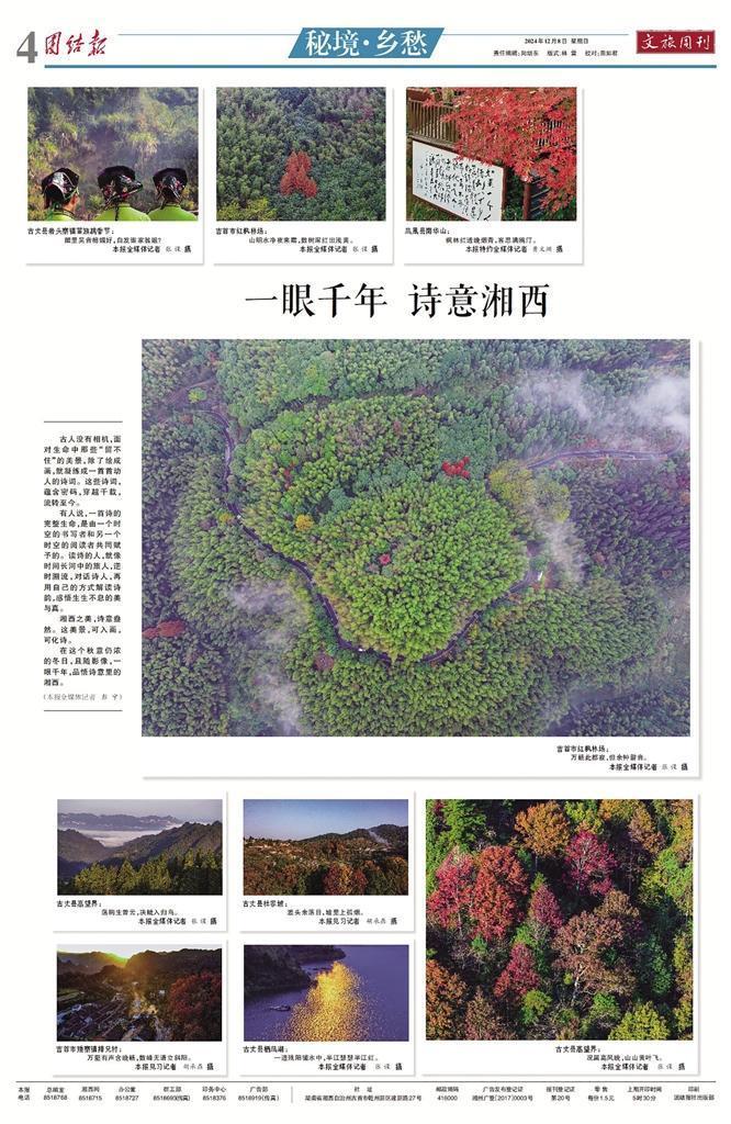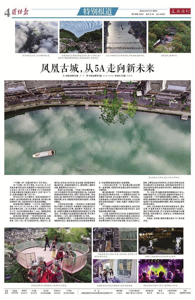 我们聚焦“业态融合”创新。创刊之初,我们便以连续26期“玩转湘西民宿”专题全景扫描湘西民宿地图。我们敏锐捕捉风口,2022年8月14日第62期头版头条视点文章《不仅要美,更要美得长久》率先关注起步中的凤凰旅拍;2023年9月2日第108期“张谨视觉”专题关注《天下凤凰 旅拍天堂》,2024年11月3日第162期专题关注《旅拍天堂 长红常新》,持续追踪其成长为“旅拍天堂”的产业传奇。