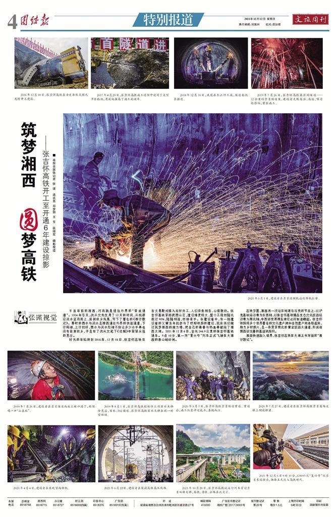 我们为每一寸铁轨的延伸而振奋。从2021年4月18日第1期“张谨视觉”栏目用新闻摄影报道聚焦张吉怀高铁铺轨,到2021年9月5日第20期专题报道《高铁时代 迎面而来》探访站点建设,到2021年10月31日第25期《乘最美高铁 赏神秘湘西》专题聚焦媒体试乘体验,直至2021年12月5日第30期推出36个版的“张吉怀高铁开通特刊”,我们以磅礴之力,见证并欢呼“神秘湘西圆梦高铁”的历史时刻。