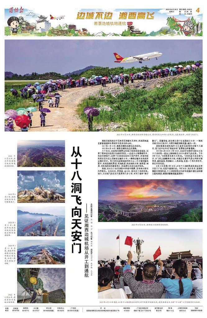我们为第一架飞机的起降而激昂。2023年4月2日第86期我们以《边城不边 梦圆蓝天》为题记录边城机场试飞;2023年8月20日第106期再推“湘西边城机场通航特刊”,宣告湘西正式迈入“航空时代”。随后连续6期的“请世界飞到湘西 让湘西飞向世界”系列策划,将这场交通革命的深远意义诠释得淋漓尽致。