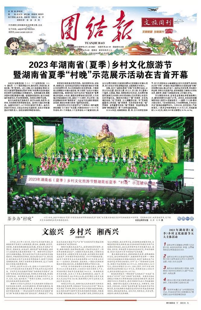 交通格局的巨变,赋予了湘西“办会兴城”的强大底气。2022年7月10日第57期“湘西州首届旅发大会特刊”,2023年7月16日第101期“第二届湘西州旅发大会特刊”,2024年11月10日第163期“第三届湘西州旅发大会特刊”,我们以特刊形式全程记录湘西文旅“以会兴城”之路。2023年6月4日第95期8个版的“文旅赋能 乡村振兴”特刊,我们见证了全国文化和旅游赋能乡村振兴工作现场经验交流会、2023年湖南省(夏季)乡村文化旅游节暨湖南省夏季“村晚”示范展示活动等国家级、省级盛会落户湘西的荣光时刻。