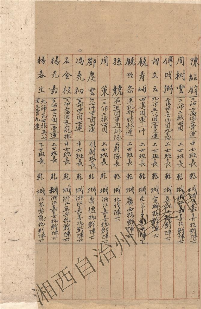 乾城县(今吉首市)抗战阵亡烈士名册。(原件藏于吉首市档案馆,湘西州档案馆存有数字化副本)