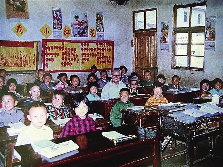 沈从文回到自己曾经学习过的文昌阁小学,与孩子们一起学习。