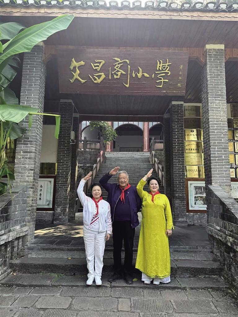 2024年11月,校友李振军将军之子李大地(中)一行回文昌阁小学参观留念。
