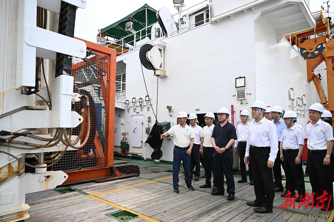 9月8日,沈晓明一行在湖南科技大学三亚研究院科考船调研。