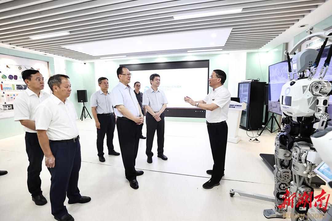 8日,毛伟明一行首先来到湖南大学,走进电能高效高质转化全国重点实验室、机器人视觉感知与控制技术国家工程研究中心,看望慰问中国工程院院士罗安、王耀南,详细询问科研攻关、人才培养、成果转化等情况。毛伟明勉励他们坚持教育科技人才一体推进,厚植家国情怀、潜心教书育人、勇攀科技高峰,充分发挥好高能级科创平台作用,取得更多原创性科研成果、培养更多创新型人才,为实现国家高水平科技自立自强再立新功。