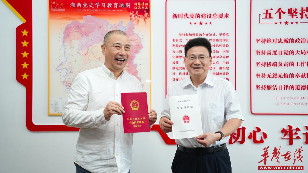 华声在线9月11日讯(全媒体记者 赵瞳铱 通讯员 胡自轩)9月10日,湖南省自然资源厅在长沙为城步苗族自治县威溪铜矿采矿权人颁发全省首本采矿权不动产权证书和首本采矿许可证,标志着矿业权“权证分离”制度在湖南正式落地。