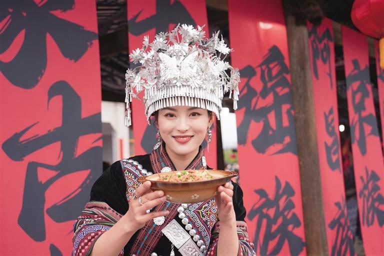 苗族姑娘展示特色美食。团结报全媒体记者 张谨 摄