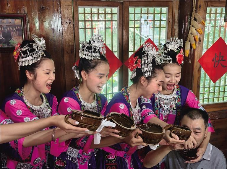 侗族姑娘献上美酒。团结报全媒体记者 张谨 摄
