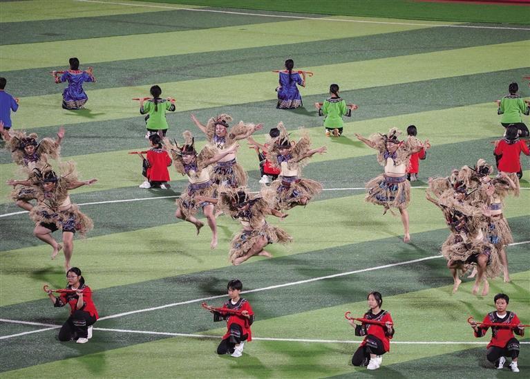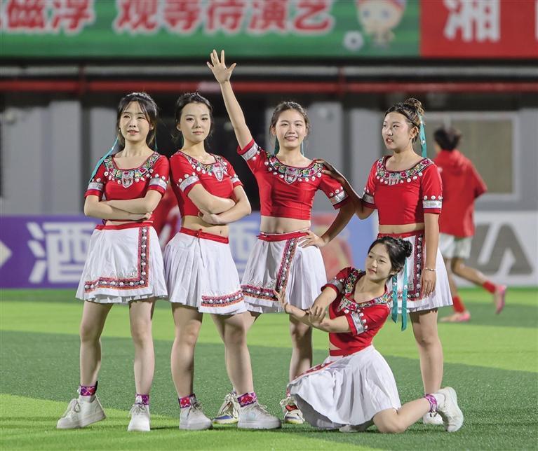 球赛中场休息时,深山乐队与足球宝贝合力登场,为现场观众带来了一场青春活力的精彩表演。 团结报全媒体记者 杨贤清 摄