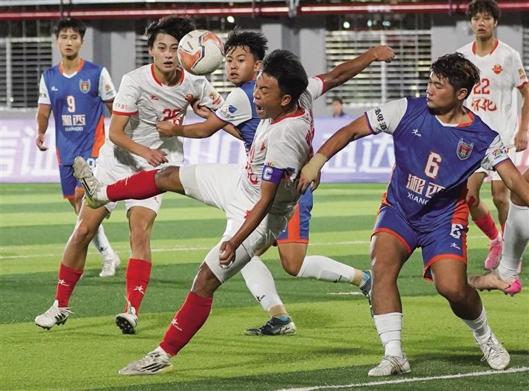 就像湘西队那粒教科书级的防守反击进球:1号门将刘宇阳扑住边路传中后,果断手抛球发动快攻;13号刘云合得球后如离弦之箭,沿边线爆趟闪过铲抢,在补防球员到位前精准横传;队长10号王沾中路得球,一个横蹚躲开拦截,一脚远射迫使对方门将脱手;5号李昊阳眼疾脚快,补射破门——从本方禁区到对方球门,4名球员的无缝衔接,每一次触球都恰到好处,每一次跑位都精准默契,把“1+1>2”的团队之美,演绎得淋漓尽致。