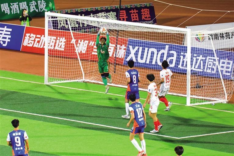 湘西队门将刘宇阳本场比赛表现出色,不仅多次扑出怀化队射门零封对手,还通过快速抛出手抛球间接助攻了第二个进球。 团结报全媒体记者 杨贤清 摄