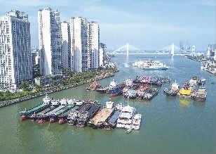 9月23日,船只在海口新港码头停靠避风(无人机照片)。