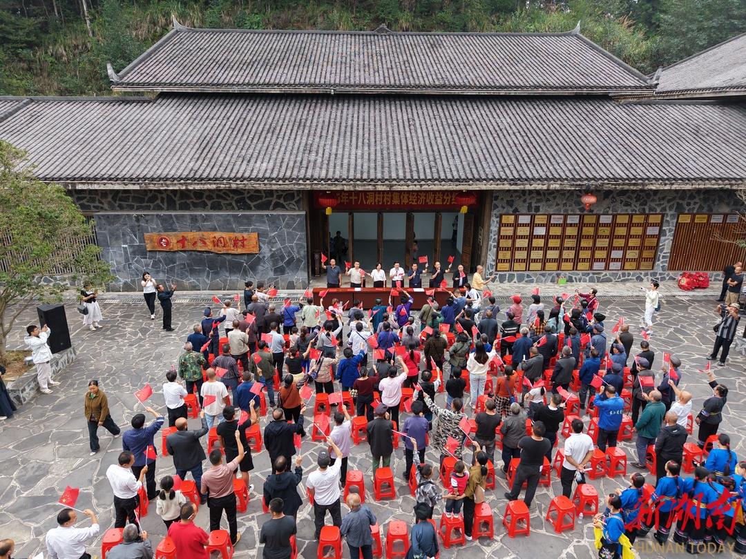 华声在线10月12日讯(记者 郭朵朵 通讯员 邓超)雄狮跃动,苗鼓铿锵。今天,湘西土家族苗族自治州花垣县双龙镇十八洞村村部前坪热闹非凡,村集体经济收益分红仪式在此举行,现场发放分红款100万元,惠及全村249户997名村民。