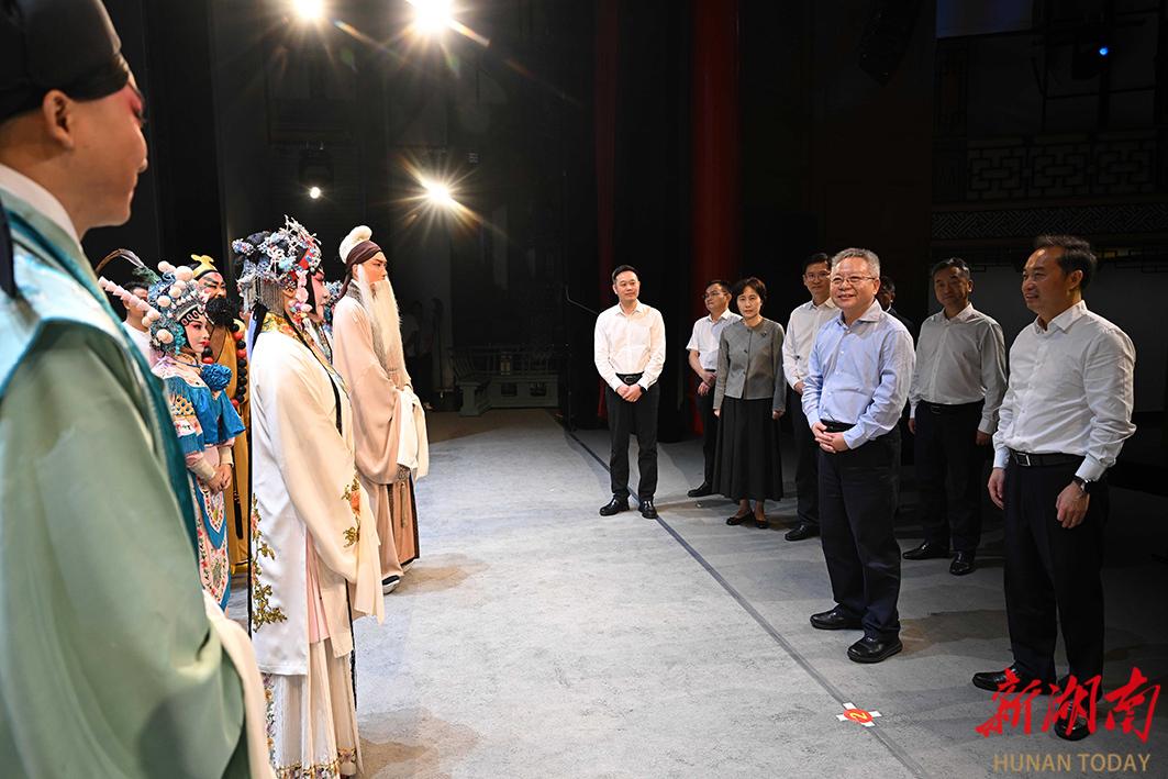 来到郴州有色金属深加工及战略储备基地,沈晓明察看湖南柿竹园有色金属有限责任公司矿山修复场景、研发中心和生产车间,详细了解产品工艺、智慧矿山建设、安全生产等情况,指出要做好矿产资源精深加工文章,推动有色金属产业链往下游、往高附加值、往终端产品走,同时鼓励有条件的企业发展特色工业旅游,综合提升经济效益和社会效益。在湖南格瑞普新能源有限公司,沈晓明了解产品研发、应用和销售等情况,希望企业加大在湘布局和投入,进一步做大规模,提升市场竞争力。来到湖南省昆剧团,沈晓明深入了解剧种传承发展情况,指出要深化国有文艺院团改革,探索文艺院团省市共建模式,加大传统戏曲推广力度,培育更多年轻观众。