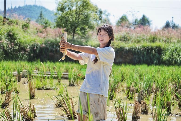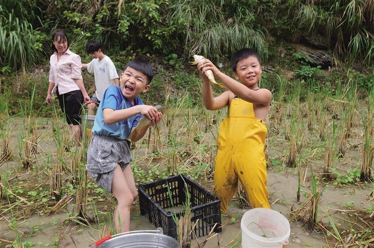 稻田里一片欢声笑语,一幅唯美的田园画卷徐徐展开。市民游客挽起裤脚,踩进泥土,弯腰摸索、追逐鱼儿,连空气都是幸福的味道。稻花鱼养殖是吉信镇特色产业,稻花鱼以稻田里的稻花、杂草等为食,肉质鲜嫩,营养丰富,深受群众喜爱。举办捉稻花鱼活动,既能充分展示满家村的乡村风貌和特色产业,让游客沉浸式感受乡村魅力,还能促进农旅消费,带动乡村旅游发展。