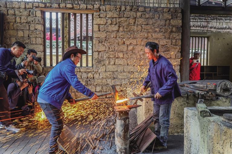 惹巴拉景区打铁花非遗展演。 团结报全媒体记者 胡承鼎 摄