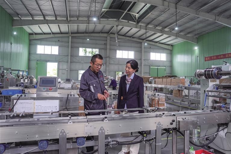 中国银行湘西分行的工作人员深入普惠客户的工厂车间。