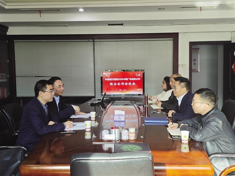 中国银行湘西分行与中国广电湘西公司召开银企合作洽谈会。