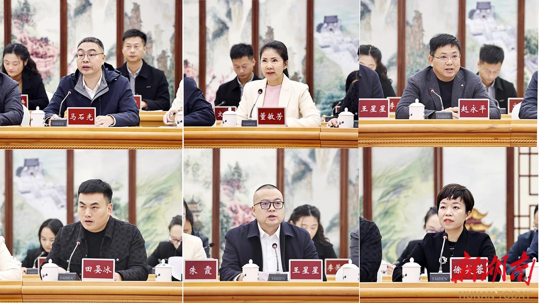 座谈会上,马石光、董敏芳、赵永平、田晏冰、王星星、徐芙蓉、朱霞、余理、邓贤、高狄等10位代表围绕培育壮大新质生产力、推动科技和产业深度融合、加快农业农村现代化、加强新就业群体权益保护、统筹义务教育优质均衡发展、积极应对人口老龄化、建设年轻人友好省份、数字赋能基层减负等发表意见建议。毛伟明说,大家的发言胸怀发展大局、服务中心工作,围绕各自领域提出了许多专业性、操作性强的意见建议,传递了基层呼声、群众意愿和企业需求,既有专业深度、也有民生温度,既立足当下实际、又着眼未来发展,体现了强烈的大局意识、良好的专业素养、浓厚的民生情怀,对于完善规划建议有着积极意义。起草小组要认真梳理、仔细研究、充分吸纳基层的呼声、见解和智慧,努力形成一个吃透中央精神、符合湖南实际、反映人民诉求的好规划。