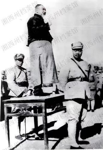 1933年春,熊希龄赴长城救死扶伤,宣慰抗日战士。图为熊希龄(中)在长城演讲,慰问鼓励官兵。前方立者为第二十九军军长宋哲元。