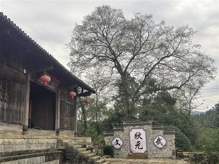 顺着状元路拾级而上,踏过清代的一百六十六级石阶,我来到了贾氏叔侄的“状元屋”。屋外有围墙,全是规整巨大的磴子岩所砌,留有朝门,入得朝门有院坝。过百余平方米的院坝,再登石阶方可入屋。整个院落和房屋的制式与寨子里其他住户一样,唯一不同的是,状元叔侄的房屋是同处一个院落,合用一个院坝,共用一个屋基,起点在一个水平线上。两栋房屋紧紧相依,中间仅留一过道,但屋顶却大有玄机,叔叔的明显要高出几分,又向一侧延伸出不少,实实地罩着侄儿的房屋。进入房屋的石阶也大有讲究,叔叔的九级,而侄儿的却只七级。这些分明预示着喇宗坡人既要紧密团结,相互照应,抱团发展,又要长幼有序,不可乱了礼制。我想,喇宗坡能够保存得如此完好,这与状元叔侄的理念,乃至整个喇宗坡人的理念不无关系的——这种理念如状元树般根深叶茂,似送子泉般润物无声,是山水间长出的礼序,是岁月里沉淀的智慧,是人文与自然相生相成的生态。