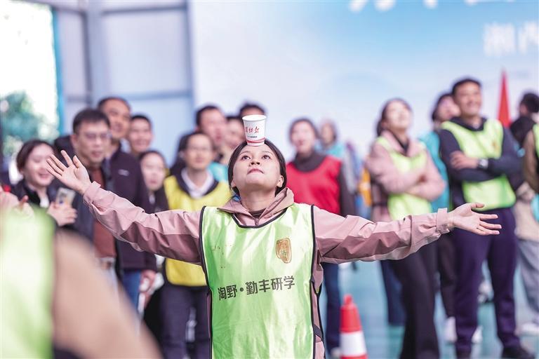 趣味体育竞赛“夹纸顶杯” 。 团结报全媒体记者 杨贤清 摄