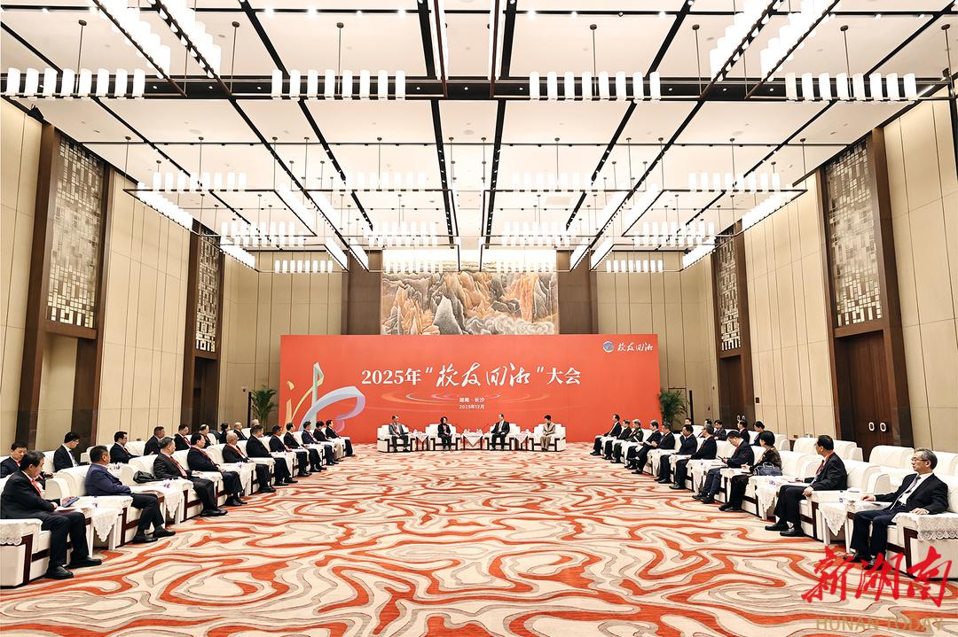 会议发布了2025年度“校友回湘”成果榜单。一年来,“校友回湘”助力全省招商引资实际到位资金1341.72亿元,助力招引优秀人才2109人,接受校友捐赠14.50亿元,校友企业与高校科研转化成果落地金额26.04亿元。