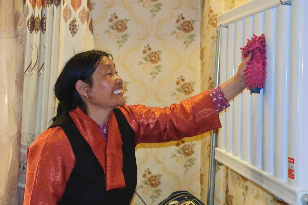 对次仁卓玛来说,不用烧煤、烧牛粪取暖,既省心又省钱。“算上政府补贴,一个供暖季按每平方米13元交费,比以前烧煤减轻了不少负担。”