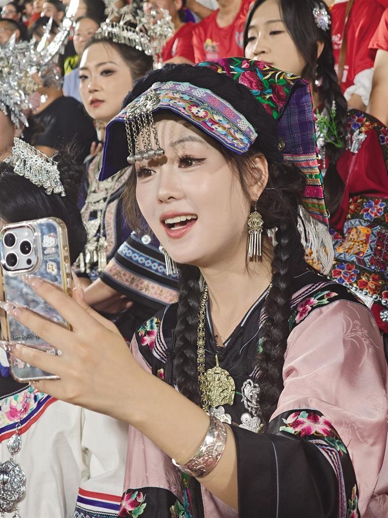 身着民族服装,在自己的主场为自己的球队加油。团结报全媒体记者 朱开朗 摄