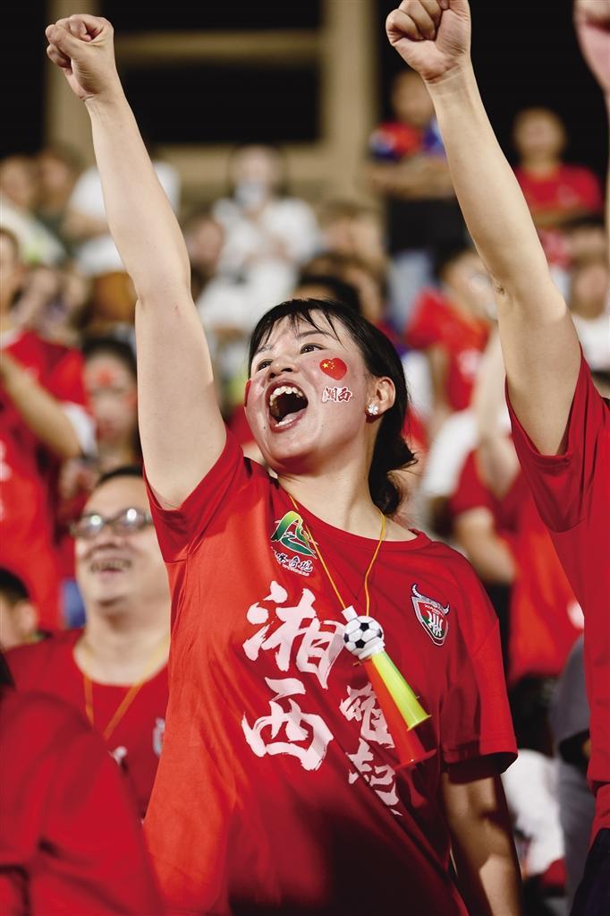 文明悄然生长。为长沙队精妙的配合鼓掌,向拼抢中倒地的怀化队员伸出援手,与张家界球迷方阵隔空呼应、同唱“一家亲”……胜负的边界在温情中被柔化。