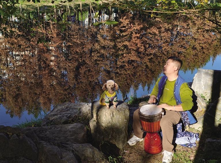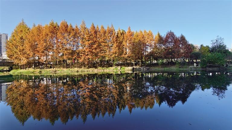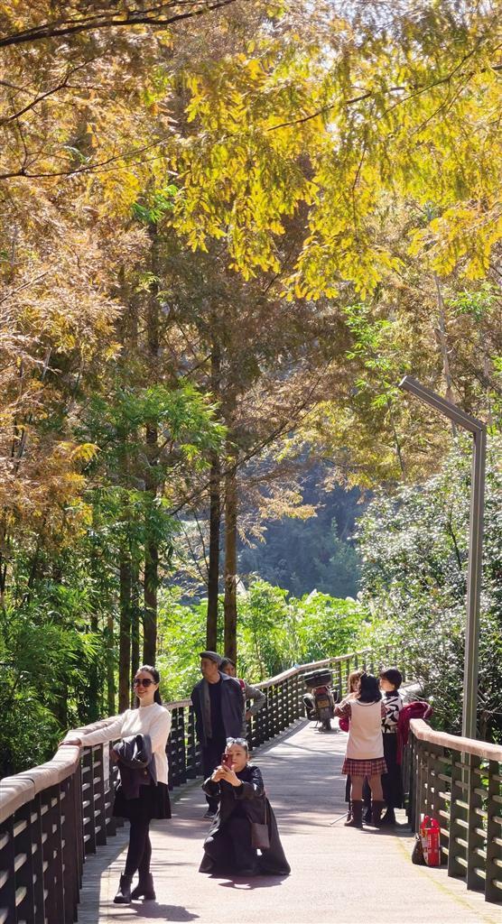 场景特色: 一排水杉沿河而立,大雪节气后逐渐转为金黄,与碧水相映成景。