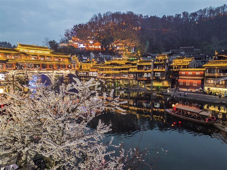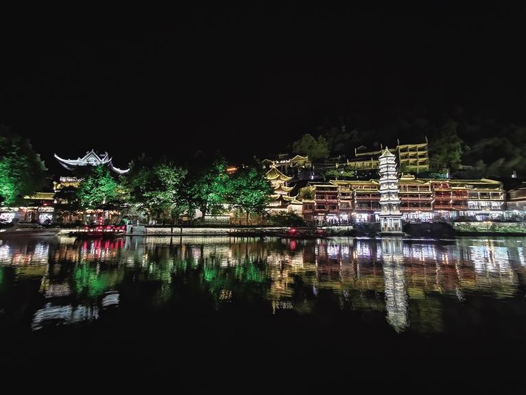 灯火璀璨,繁花绽放,凤凰的夜如一幅流光溢彩的画卷。 团结报全媒体记者 张谨 摄