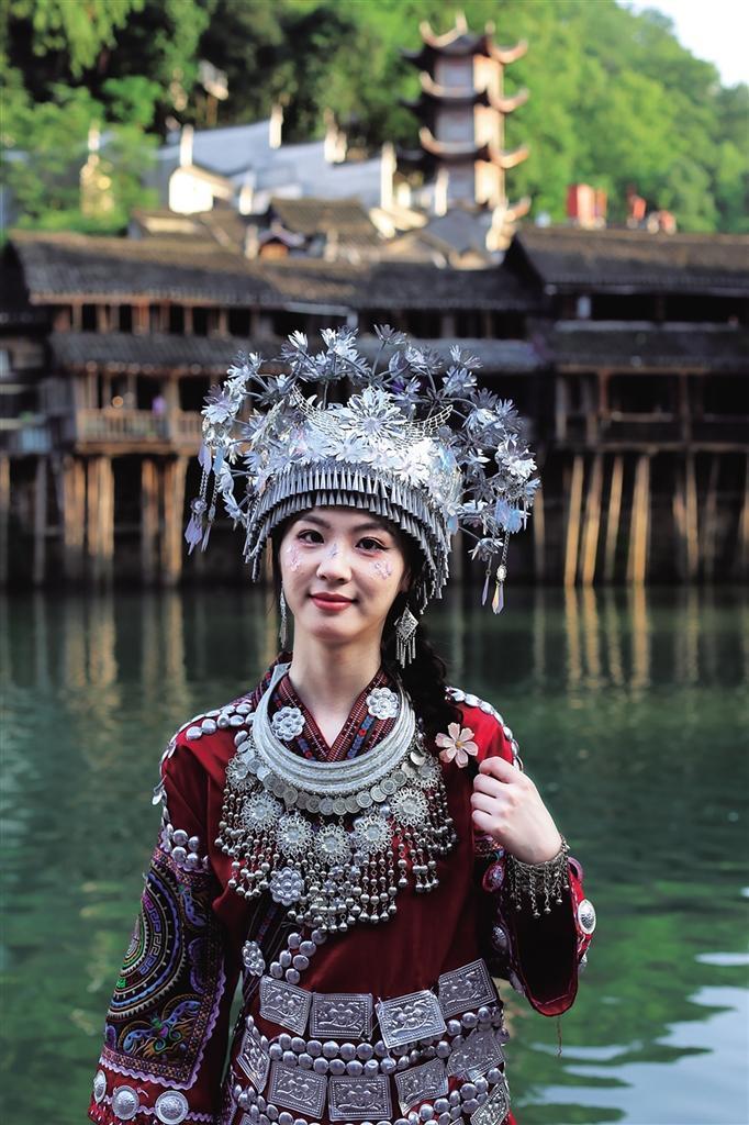 苗家女子如灵动的仙子,于沱江之畔轻展笑靥。 团结报全媒体记者 张谨 摄