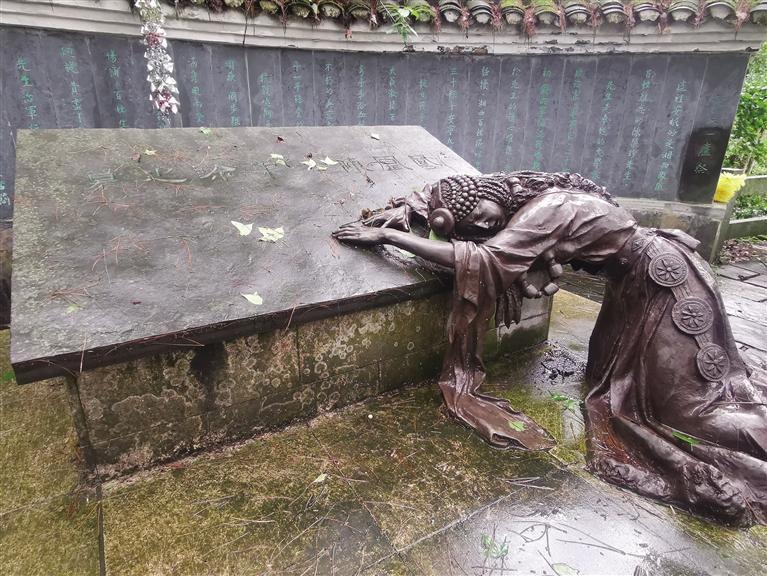 西原雕像依偎在陈渠珍墓碑旁,诉说着跨越时空的深情……凤凰古城每一个角落都充满故事与回忆。 团结报全媒体记者 石健 摄
