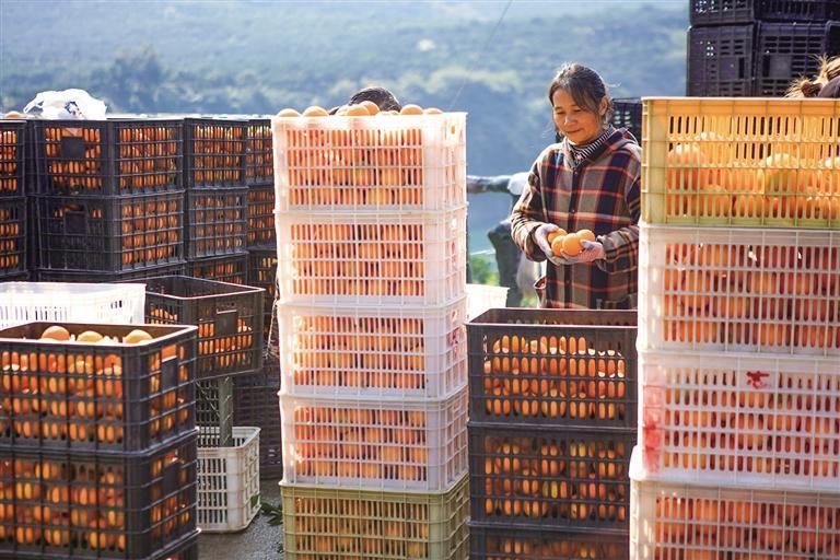 果园深处笑声扬,脐橙盈筐喜气洋。